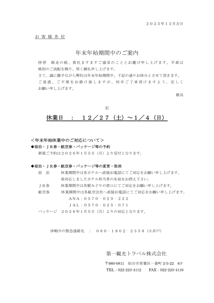 第一観光トラベル株式会社の公式アカウントになります✈️✨ 仙台発着のご旅行のご手配はもちろん、宮城県内のご宿泊のご案内もお任せください✊ #仙台#旅行#仙台旅行#旅行準備 #旅行好きな人と繋がりたい